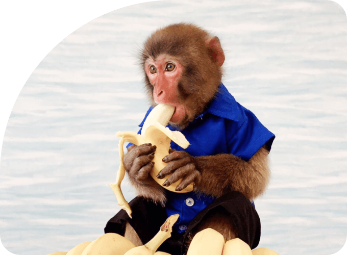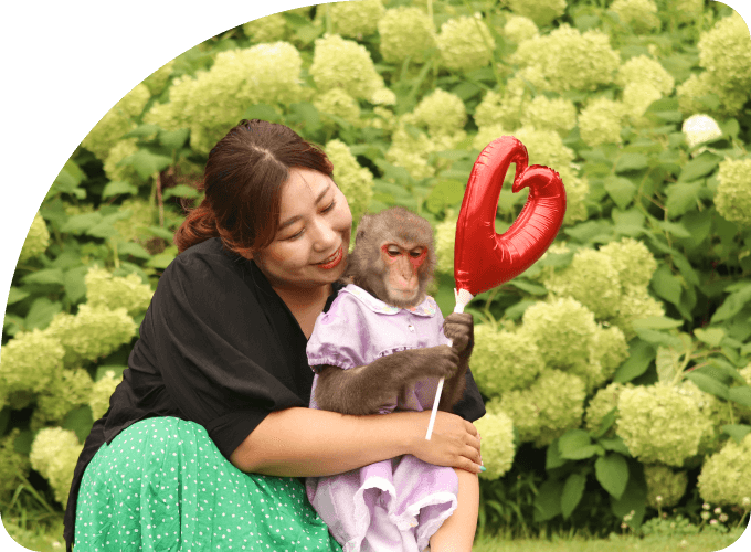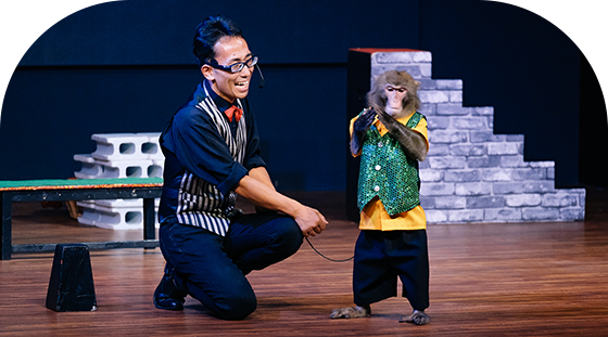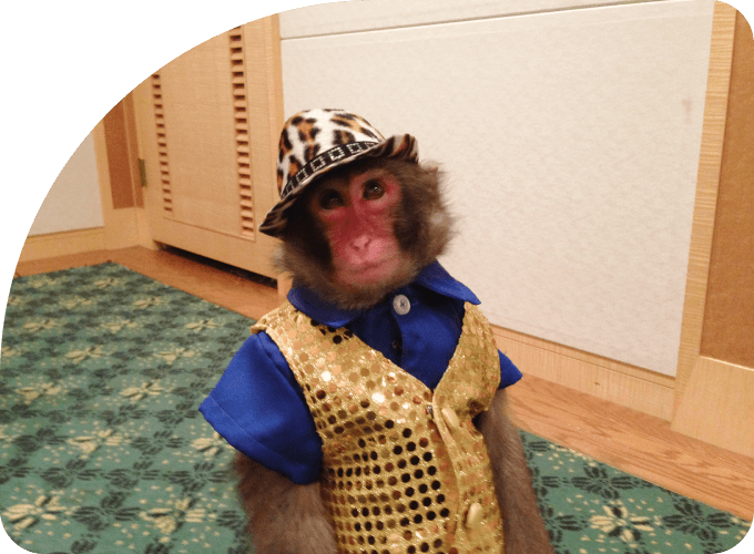 - パフォーマー1組(トレーナー1名芸猿1頭)、アシスタント1名(パフォーマー1組のみのお伺いの場合もあります。)